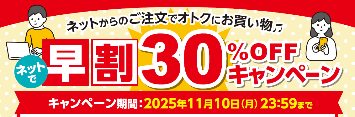 期間中、オンラインショッピングからのお買い物が30%OFF!!でお買い求めいただけます。