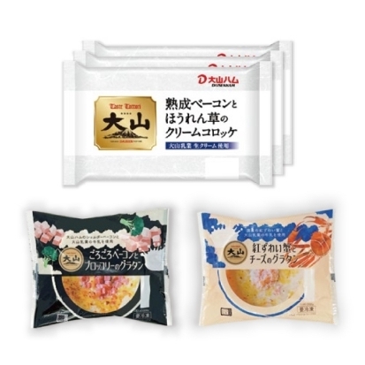 いずれも大山乳業の牛乳をぜいたくに使用。大山ハムの熟成ベーコンがたっぷり入った人気のクリームコロッケと、グラタン2種をセットにした、おうちごはんを手軽に格上げしてくれるおすすめのセットです。