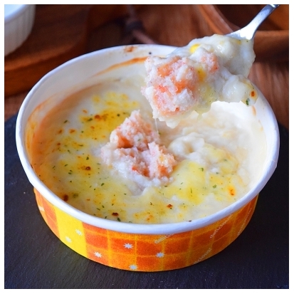 ●原材料名:紅ずわいがに(国産)、ナチュラルチーズ、牛乳(生乳(国産))、野菜(玉ねぎ、コーン)、マカロニ、小麦粉、マーガリン、乳製品、醸造調味料、チキンエキス、植物油脂、ブイヨン、酵母エキス、食塩、砂糖、香辛料/増粘剤(加工でん粉、増粘多糖類)、(一部にかに・小麦・乳成分・鶏肉を含む)
