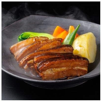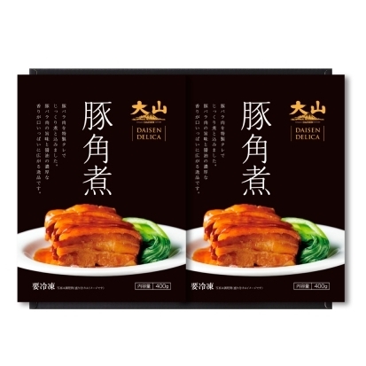 厳選した豚ばら肉を、丸大豆醤油に本みりんを加えた特製タレでじっくり煮込んだ豚角煮(400g)2個入りセットです。口に入れるとほろっととろけるような柔らかい食感と、醤油の濃厚な香り、豚ばら肉の旨みが口の中に広がる絶品の味わいです。