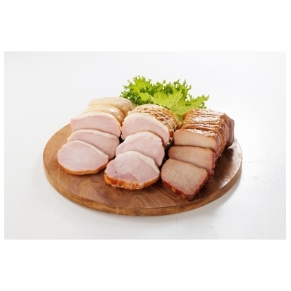 あっさりしたももハムと豚ロース肉を熟成させ、一本一本丁寧に糸で巻いてスモークした熟成糸巻ロースハム(2024年DLG金賞受賞)、特製のタレに漬け込み香ばしく焼き上げた焼豚。定番の3つの味は、毎日の食卓で大活躍いたします。