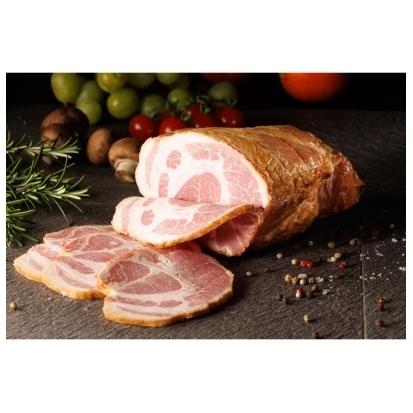 ベルクシンケンは、創業から70余年、職人から職人へと受け継がれた大山ハムの技と魂が宿る夢のハム。希少な大山山麓産豚の肩ロース肉を大山ハムの職人が厳選し、基準を満たした一部のみを使用しています。大山山麓産豚そのもののおいしさを活かすべく、味つけはできるだけシンプルにしながらも、食欲を誘う香りづけとして4種の香辛料(ローリエ、クローブ、シナモン、黒胡椒)を調味液に配合しています。豊かなスモークの香りを感じられる、職人の技とこだわりの集大成をお楽しみください。