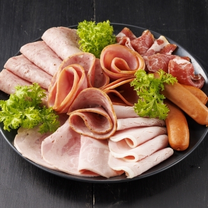 国産豚ロース肉の味わいを活かし表面を軽くローストして仕上げたカントリーロースト、白樺チップで燻した芳醇な香りの生ハム(肩ロース)に、人気のチーズリヨナー、ソテーオニオンと甘い香りのマジョラムを効かせたフライシュケーゼなどを詰め合わせた7種8品のスライスセットです。