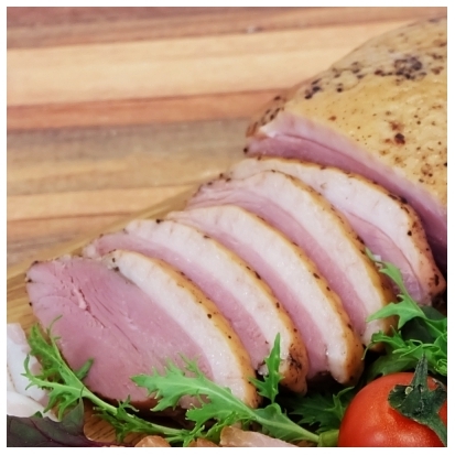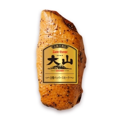合鴨肉に黒粒胡椒をまぶし、しっかりとスモーク。黒粒胡椒の野性的な香りが合鴨肉の風味をより一層引き立てます。